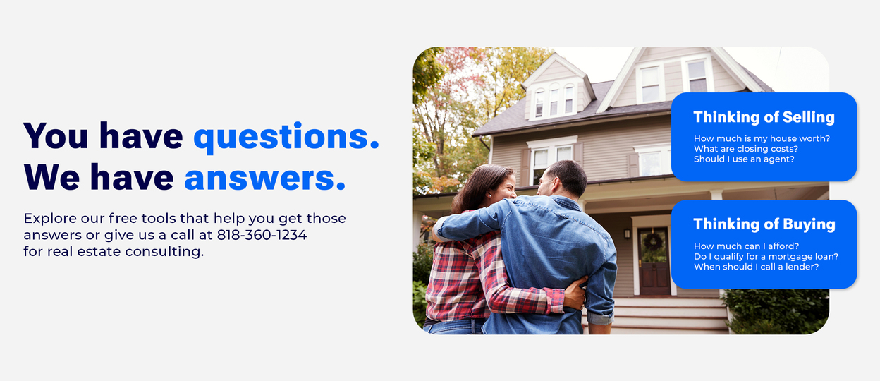 If you are thinking about buying or selling a home, you probably have questions. Give us a call at 818-360-1234 for the best real estate consulting and referral services.